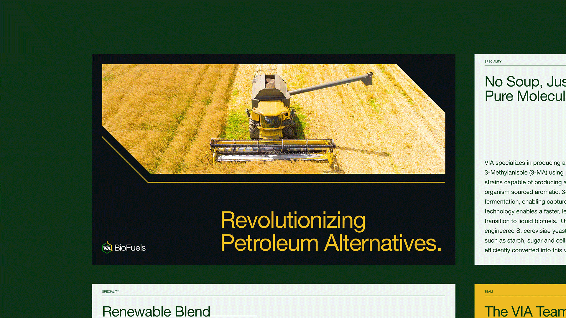 VIA BioFuels pioneered a game-changing petroleum alternative that’s faster, simpler, and more efficient to produce than ethanol – and supports carbon-free production of critical materials like nylon and decarbonized plastics.